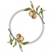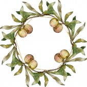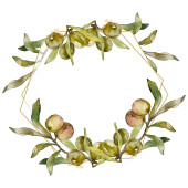 Zielone oliwki zestaw ilustracji tle akwarela. Akwarela rysunku aquarelle moda na białym tle. Obramowanie ramki