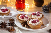 Koreczki z pasztet drobiowy, serek i Kawior z ryby podawane na deska do krojenia z rozmarynem
