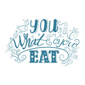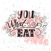 Word pisanie tekstu są co ty jesz. Koncepcja biznesowa dla mieć zdrowy tryb życia, dbać o swój żywności puste uszczelnienie z cienia dla etykieta godło Monogram stempel Symbol najwyższej jakości.