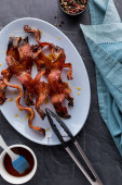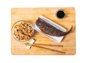 Faszerowane kalmary z sosem sojowym na czarnym tle