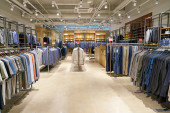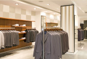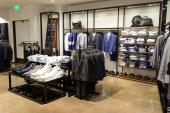 Milan Malpensa, Włochy - około listopada 2017: Odzież na wystawie w sklepie Boggi w Mediolan Malpensa Lotnisko, terminalu 1