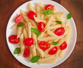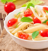 Sałatka z makaronem z pomidorkami i świeżych liści bazylii