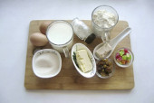 Składniki zapiekanki z twarogu z suszonymi jagodami