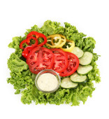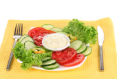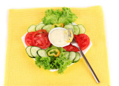 pokrojone warzywa i sosem na talerzu na białym tle