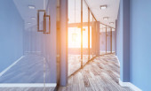 Nowoczesna sala konferencyjna. renderowania 3D... Zachód słońca