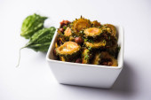 Zdjęcie "Gotowane gorzki Melon/dynia lub Karela Sabzi serwowane w misce. Nazwa naukowa to warzywo zdrowy jest Momordica charantia. Selektywny fokus" może być wykorzystywane do celów osobistych i komercyjnych zgodnie z warunkami zakupionej licencji Royalty-free. Obraz jest dostępny do pobrania w jakości wysokiej rozdzielczości do 5760x3840.