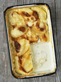 zbliżenie na rustykalne złote Zapiekanka ziemniaczana zapiekanka dauphinois