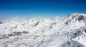 zimowy krajobraz górski w paśmie górskim Silvretta, w Alpach Szwajcarskich między Scuol i Ischgl