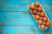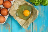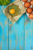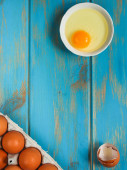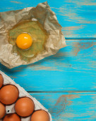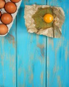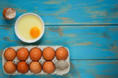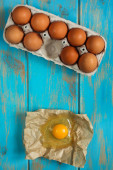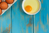jaja wylewki (biały, żółtka, Skorupka). Widok z góry. miejsce