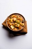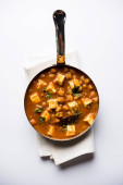 Chole Paneer curry z wykorzystaniem gotowane ciecierzycy z serem z przyprawami. Popularne North Indian przepis. serwowane w misce lub podaniem patelni. Selektywny fokus