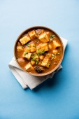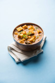 Zdjęcie "Chole Paneer curry z wykorzystaniem gotowane ciecierzycy z serem z przyprawami. Popularne North Indian przepis. serwowane w misce lub podaniem patelni. Selektywny fokus" może być wykorzystywane do celów osobistych i komercyjnych zgodnie z warunkami zakupionej licencji Royalty-free. Obraz jest dostępny do pobrania w jakości wysokiej rozdzielczości do 5760x3840.