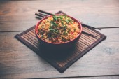 Qima lub Kheema Biryani - aromatyczne i pikantne mielonego mięsa jagnięcego lub kóz lub kurczaka gotowane w gamie aromatyczne przyprawy z ryżem basmati. serwowane w karahi z twarogiem. Selektywny fokus