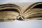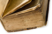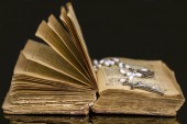 Otwórz stary świętej księgi. Na czarnym tle. Symbole chrześcijaństwa. Szczelnie-do góry. Koncepcja religii.