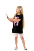 Pełna długość Portret słodkie małe dziecko w stylowe ubrania z kamera retro