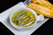pyszne hiszpańskie przekąski, świeże ryby marynowane w oliwie, podawane z grzankami, owoce morza, tapas