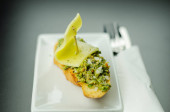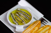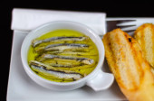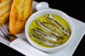 pyszne hiszpańskie przekąski, świeże ryby marynowane w oliwie, podawane z grzankami, owoce morza, tapas