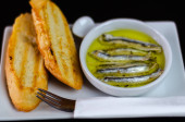 pyszne hiszpańskie przekąski, świeże ryby marynowane w oliwie, podawane z grzankami, owoce morza, tapas