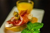 Owoce hiszpańskie tapas, mini Kanapki żywności zestaw, pyszne przekąski zakąska, obiad