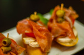 Owoce hiszpańskie tapas, mini Kanapki żywności zestaw, pyszne przekąski zakąska, obiad