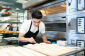 Tułów płci męskiej i żeńskiej ciasta gotuje chouxs wyrabiania ciasta w kuchni