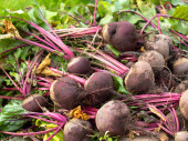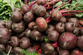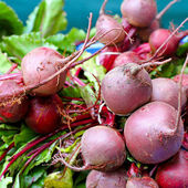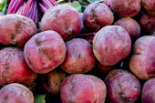Buraki z rzędu ułożone w targ na świeżym powietrzu