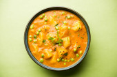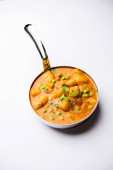 Zdjęcie "Indian Aloo curry Mutter - ziemniaki i groszek zanurzone w sosie pomidorowym cebula i przyozdobionym z liści kolendry. Serwowane w Karahi/kadhai lub patelni lub miski. Selektywny fokus" może być wykorzystywane do celów osobistych i komercyjnych zgodnie z warunkami zakupionej licencji Royalty-free. Obraz jest dostępny do pobrania w jakości wysokiej rozdzielczości do 5760x3840.