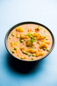 Zdjęcie "Indyjskich żywności - Aloo curry masala. Ziemniaki gotowane z przypraw i ziół w pomidorowym curry. w misce serwowane na tle moody. Selektywny fokus" może być wykorzystywane do celów osobistych i komercyjnych zgodnie z warunkami zakupionej licencji Royalty-free. Obraz jest dostępny do pobrania w jakości wysokiej rozdzielczości do 5760x3840.