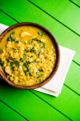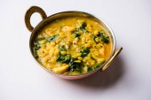 Zdjęcie "Dal Palak lub soczewicy szpinak curry - przepis zdrowe popularne indyjskie danie główne. serwowane w karahi/patelni lub miski. Selektywny fokus" może być wykorzystywane do celów osobistych i komercyjnych zgodnie z warunkami zakupionej licencji Royalty-free. Obraz jest dostępny do pobrania w jakości wysokiej rozdzielczości do 5760x3840.
