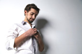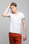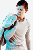 młody mężczyzna moda model stwarzające w strój casual