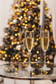 Minimalistyczne tło uroczysty z szampanem w okularach i konfetti