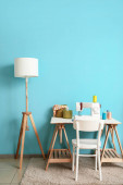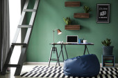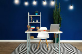 Wnętrze nowoczesnego pokoju z wygodnym miejscem pracy