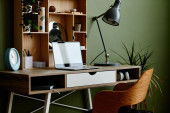Zdjęcie "Wnętrze nowoczesnego pokoju z wygodnym miejscem pracy" może być wykorzystywane do celów osobistych i komercyjnych zgodnie z warunkami zakupionej licencji Royalty-free. Obraz jest dostępny do pobrania w jakości wysokiej rozdzielczości do 5760x3840.