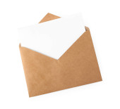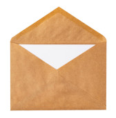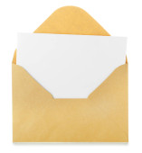 Złotą kopertę i białe karty z kopii przestrzeni, izolowana na białym tle. Błyszczące złoto koperta, z życzeniami lub mailingowej zaproszenie.