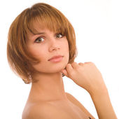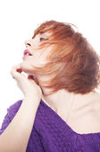 piękny czerwony dziewczyna na biały