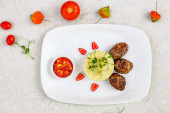 Zdjęcie "Arabski klopsiki z bulgur. Widok z góry." może być wykorzystywane do celów osobistych i komercyjnych zgodnie z warunkami zakupionej licencji Royalty-free. Obraz jest dostępny do pobrania w jakości wysokiej rozdzielczości do 5760x3840.