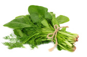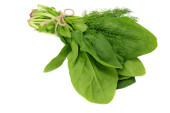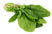 liście szpinaku na drewnianym tle. Zdrowe jedzenie. Widok z góry.