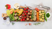 Zdrowa sałatka grecka w misce na płyty drewna na stole.
