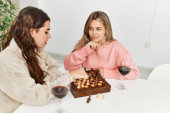 Szczęśliwa kobieta senior bliźnięta gry w szachy razem w domu