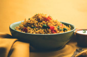 Zdjęcie "Schezwan paneer smażony ryż z sosem i serem kostki Szechuan. serwowane w misce lub płyta lub patelni. Selektywny fokus" może być wykorzystywane do celów osobistych i komercyjnych zgodnie z warunkami zakupionej licencji Royalty-free. Obraz jest dostępny do pobrania w jakości wysokiej rozdzielczości do 5760x3840.