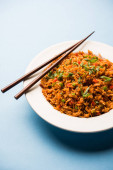 Zdjęcie "Schezwan paneer smażony ryż z sosem i serem kostki Szechuan. serwowane w misce lub płyta lub patelni. Selektywny fokus" może być wykorzystywane do celów osobistych i komercyjnych zgodnie z warunkami zakupionej licencji Royalty-free. Obraz jest dostępny do pobrania w jakości wysokiej rozdzielczości do 5760x3840.