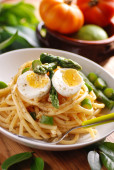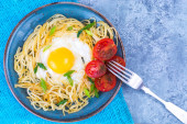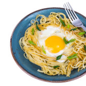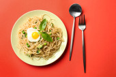 Zdjęcie "Płyta z smaczne makarony i jajkiem, zbliżenie" może być wykorzystywane do celów osobistych i komercyjnych zgodnie z warunkami zakupionej licencji Royalty-free. Obraz jest dostępny do pobrania w jakości wysokiej rozdzielczości do 5760x3840.