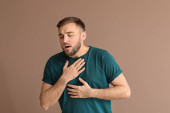Zdjęcie "Młody człowiek z atak astmy, biorąc inhalator z tabeli" może być wykorzystywane do celów osobistych i komercyjnych zgodnie z warunkami zakupionej licencji Royalty-free. Obraz jest dostępny do pobrania w jakości wysokiej rozdzielczości do 5760x3840.