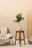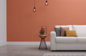 Zdjęcie "Prosty salon wnętrza z Nowoczesna sofa w pobliżu kolor ściany. Miejsca na tekst" może być wykorzystywane do celów osobistych i komercyjnych zgodnie z warunkami zakupionej licencji Royalty-free. Obraz jest dostępny do pobrania w jakości wysokiej rozdzielczości do 5760x3840.