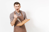 Zdjęcie "Gospodyni kobiece kobieta kucharz lub piekarz w paski fartuch biały t-shirt, toczek kucharzy kapelusz na białym tle na tle czerwone ściany. Kobieta trzymać puste pusty płyta rundy z miejscem do jedzenia. Makiety koncepcja przestrzeni kopii" może być wykorzystywane do celów osobistych i komercyjnych zgodnie z warunkami zakupionej licencji Royalty-free. Obraz jest dostępny do pobrania w jakości wysokiej rozdzielczości do 5760x3840.