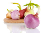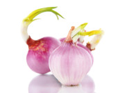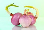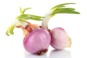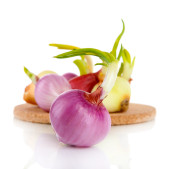 cebula kiełkuje na białym tle