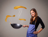 Woman making pancakes