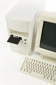 Rodzajowy vintage komputera na białym tle w stylu lat 90-tych. ilustracja 3D.