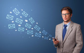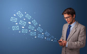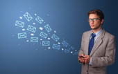 Biznesmen koncepcja poczty wokół za pomocą telefonu