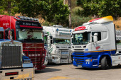 Torrox, Hiszpania - 22 lipca 2018 Pokaż ciągnika jednostek dla odwiedzających, potężne maszyny zebrane w kwadrat miasto andaluzyjskich