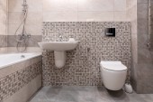 Zdjęcie "Wnętrze nowoczesne łazienki z wanną, prysznicem i toaletą" może być wykorzystywane do celów osobistych i komercyjnych zgodnie z warunkami zakupionej licencji Royalty-free. Obraz jest dostępny do pobrania w jakości wysokiej rozdzielczości do 5760x3840.
